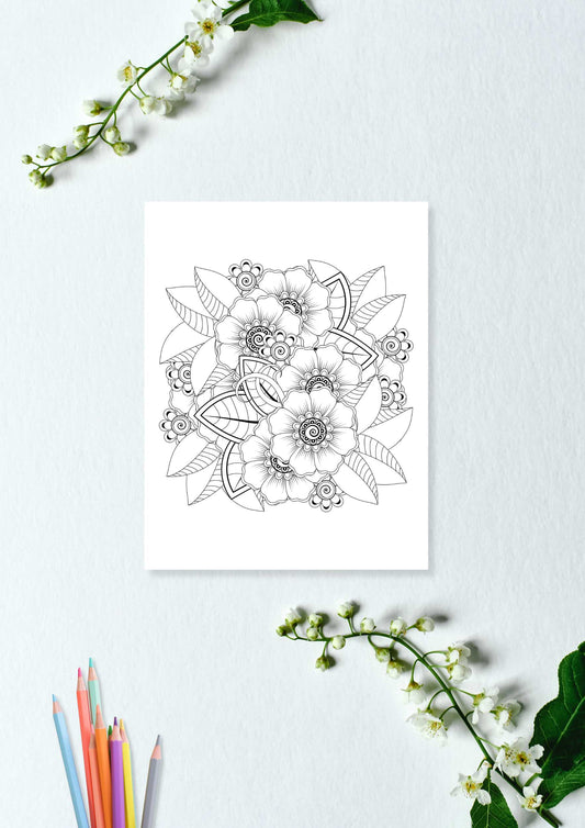 Blomsterlill fargeleggingsbok | 50 fargeleggingssider | PDF og PNG