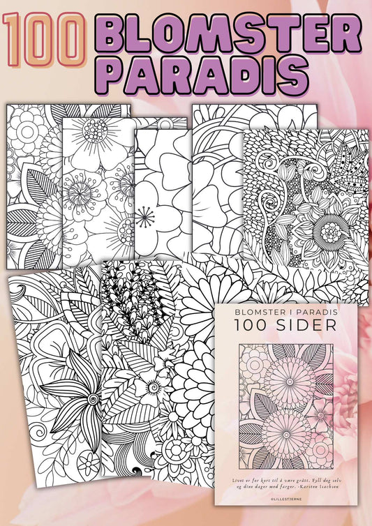 Blomster i paradis tegnebok 100 blomster å fargelegge | Interiør | PDF og PNG