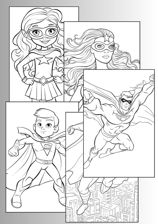 Superhelt fargeleggingsbok | 30 ark å fargelegge | PDF og PNG
