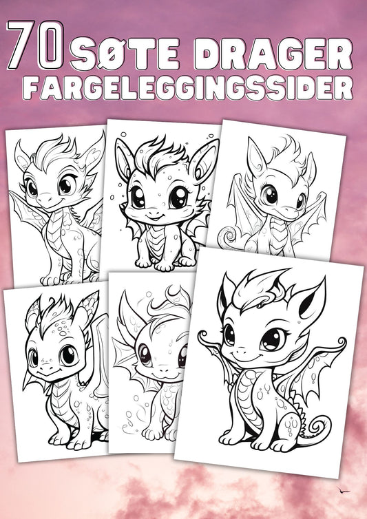Søte drager å fargelegge | Enkle tegninger med 70 drager | PDF utskrivbare sider