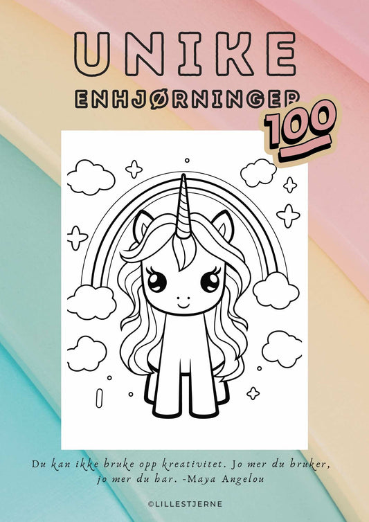 Enhjørningens fantasiverden | 150 sider med enhjørning å fargelegge | PDF og PNG