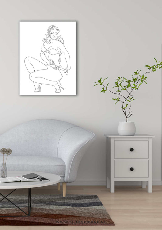 Pin-up fargelegging sider | 12 unike design | PDF og PNG