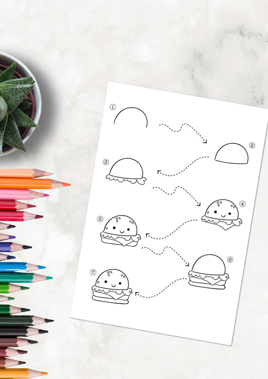 Kawaii tegninger for barn | 50 tegneark med søte mat-motiv | PDF og PNG