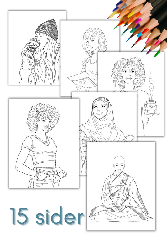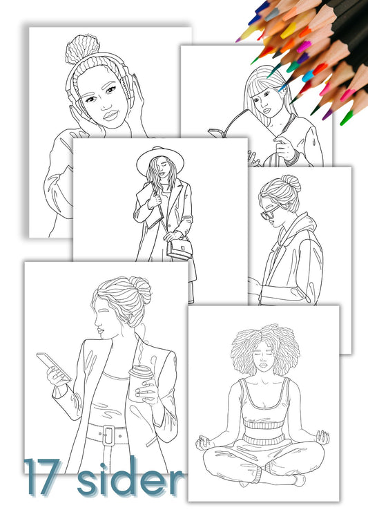 Moderne kvinner fargeleggingsbok | 15 sider til fargelegging | PDF og PNG utskrift