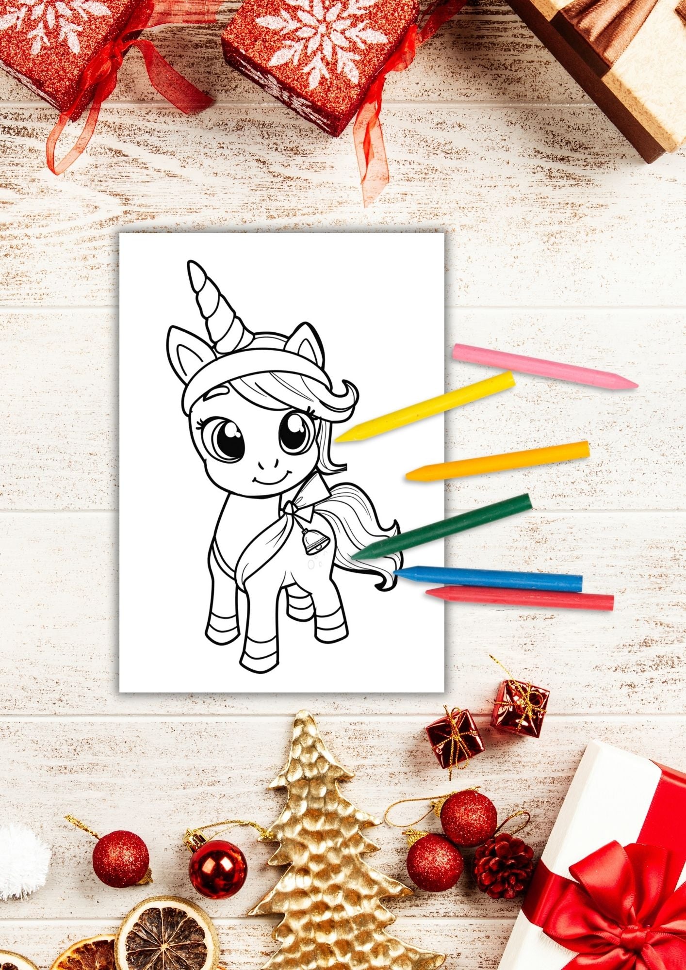 Enhjørningens jul fargeleggingsbok til utskrift | 75 sider jule-enhjørninger