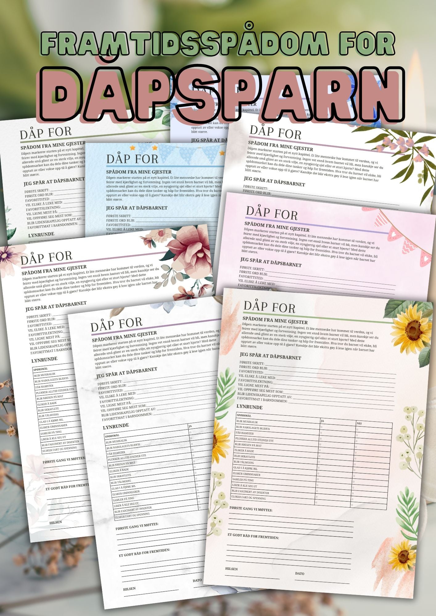 Framtidsspådom for dåpsbarn | 8 motiv inkludert | Skriv ut A4-ark